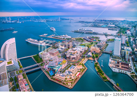 日本の横浜都市景観ノルウェージャン・スピリットやぷかりさん橋などを望む