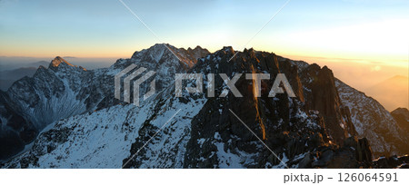 Sunset view of Yari-Hotaka route / 夕照の槍穂高縦走路(広角撮り)