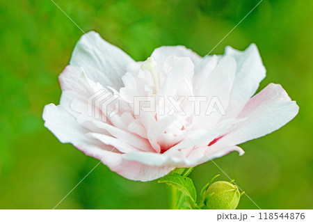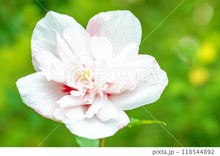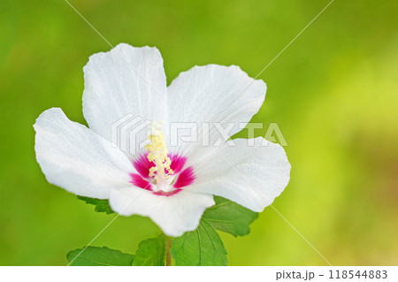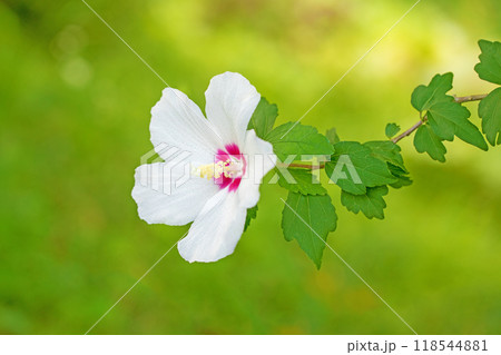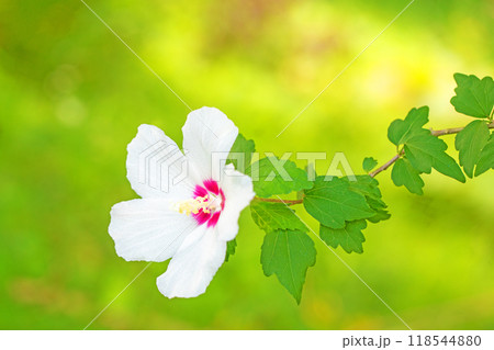 家の周りの草花 四季の色々 初夏の公園に美しい白色のムクゲの花が咲き始めました