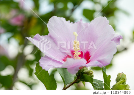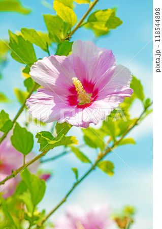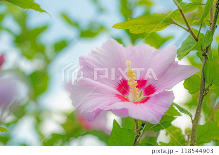 家の周りの草花 四季の色々 初夏の公園に美しいピンク色のムクゲの花が咲き始めました