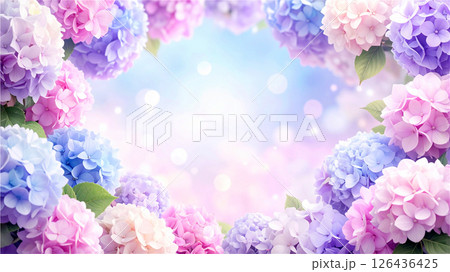 ペールピンクとペールパープルのあじさいのお花のフレーム
