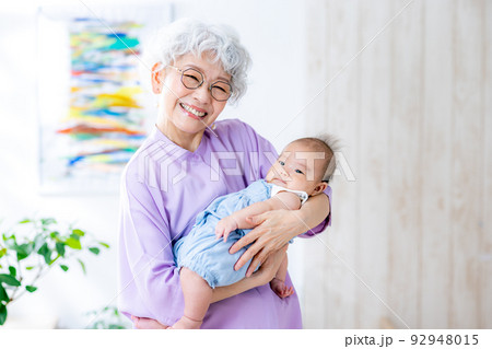 赤ちゃんを抱っこする笑顔のおばあちゃん