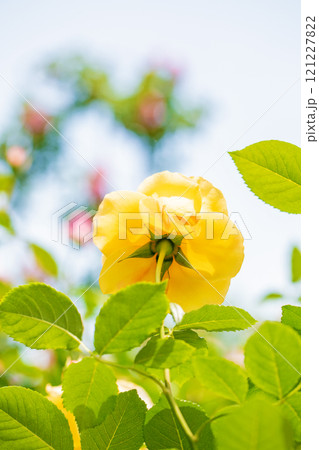 家の周りの草花 四季の色々 バラ園 美しい可憐な花びら 初秋のかぜに揺れる黄色いバラの花