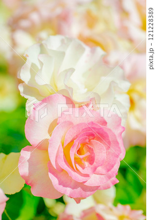 家の周りの草花 四季の色々 バラ園 美しい可憐な花びら 初秋のかぜに揺れるピンクのバラ