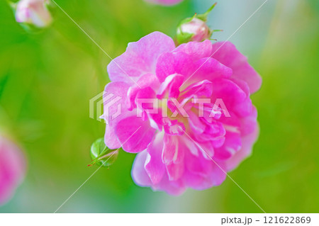 家の周りの草花 四季の色々 バラ園 美しい可憐な花びら 初秋のかぜに揺れるピンク色のバラの花