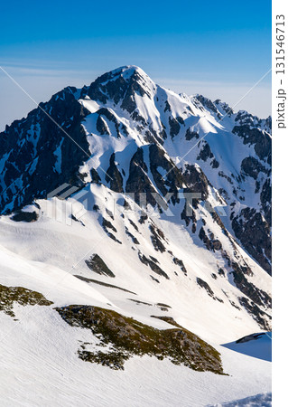 別山へ向かう登山道から見る別山の南峰と北峰 残雪期の北アルプス立山・別山登山