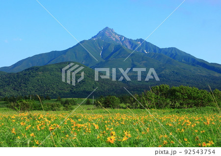 初夏の富士野園地 エゾカンゾウの花と利尻山