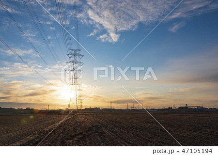 仙台北部道路を見ながらの夕陽と田園風景 宮城県