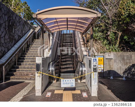 故障中で運転を停止しているエスカレーター