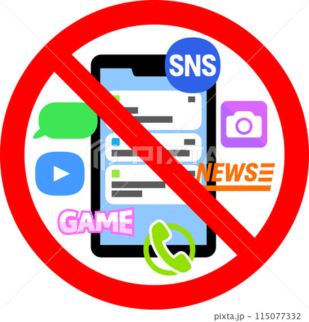 スマホとアプリ禁止のマーク、デジタルデトックス