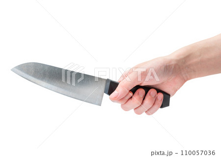 包丁を持つ手・切る・刺す・調理するイメージ(白背景)