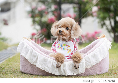 誕生日を迎えるトイプードル