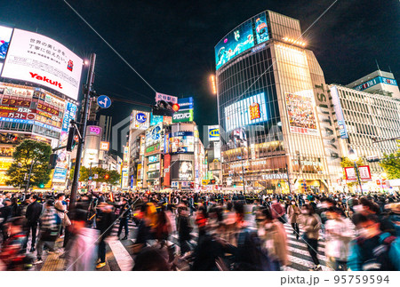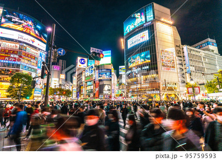 日本の東京都市景観 ハロウィーン前夜、“時短全面解除後”初の週末…渋谷は脅威の人流…=10月30日