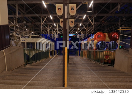 夜の生駒ケーブルの宝山寺駅 鳥居前駅方面(奈良県生駒市)
