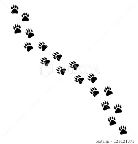 徐々に大きくなる木製の肉球の足跡が上下にあるフレーム