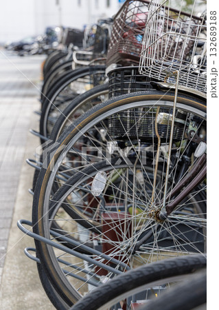 駅前の駐輪場に置かれた自転車