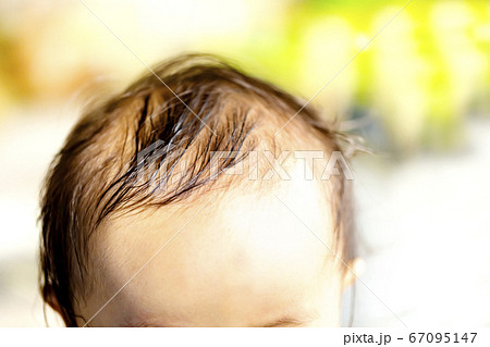 赤ちゃんの頭 前髪、または前頭部、そして汗