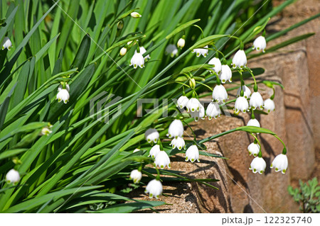 春の庭に咲くスノーフレークのかわいい白い花