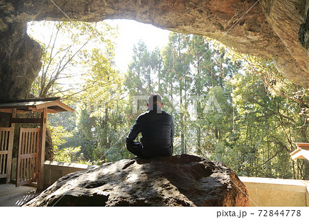 奈良県奈良市天石立神社境内柳生戸岩谷の巨石一刀石。修行中切断した風の刀。両手。鬼滅の刃聖地巡礼。