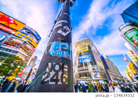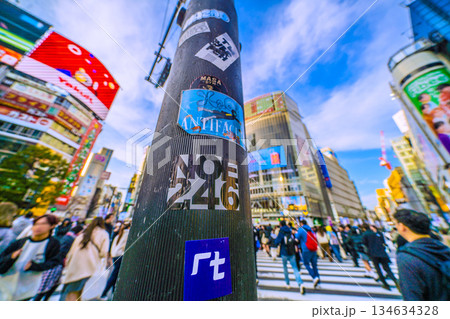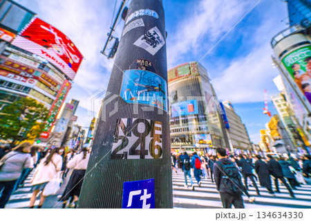 日本の東京都市景観再びシール…年の瀬。インバウンドが続く渋谷。ほとんどが外国人観光客。剥がされた柱に
