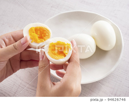 ゆで卵を持つ女性の手