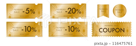 メンバーセールに使える高級感のあるポップな金のクーポンベクターアイコンセット2