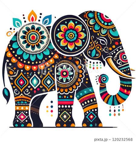 Vibrant Decorative Elephant Illustration Isolated on White Background. Generative ai