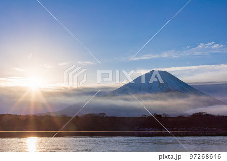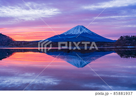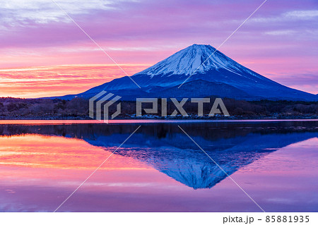 (山梨県)朝焼けが美しい・精進湖から望む富士山