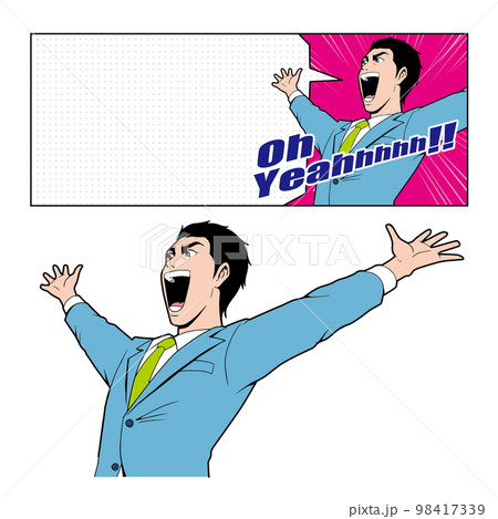 レトロな熱血漫画風・歓喜する会社員のイラストバナー