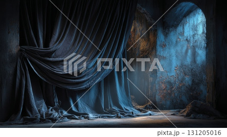 Moody Studio Backdrop Featuring Black Velvet Drapery and Textured Walls