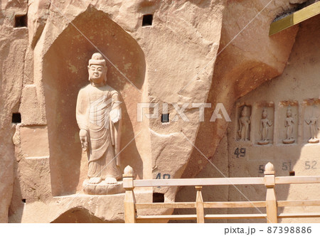 中国 甘粛省 蘭州 炳霊寺の絶壁の磨崖大仏 弥勒菩薩