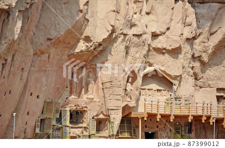 中国 甘粛省 蘭州 炳霊寺の絶壁の磨崖仏の回廊