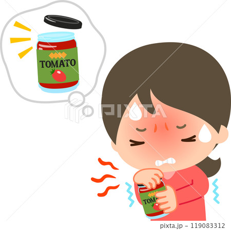 トマトピューレのビンが開かなくて苦労している女性
