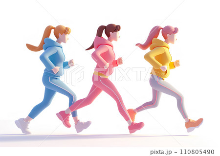 三人でジョギングする女性
