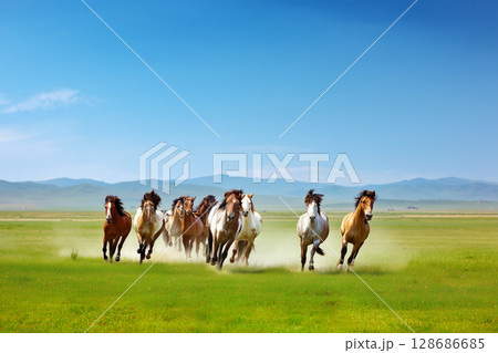 草原を駆け抜ける野生の馬たち|力強く自由な生命の躍動感あふれる風景