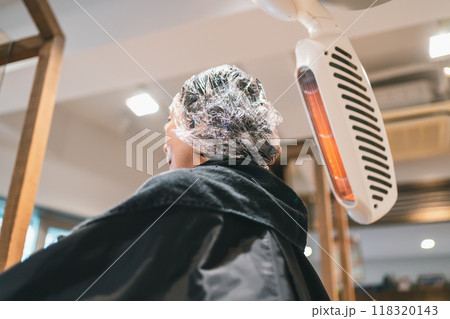 美容室シーン ヘアブリーチ ハイトーンカラー perming写真素材