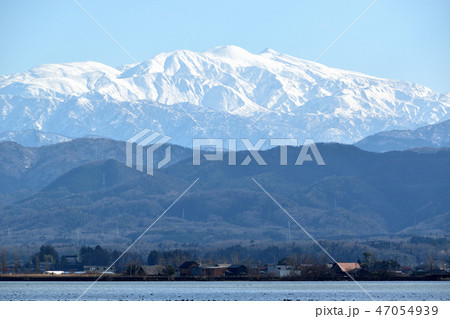 石川県 加賀市 柴山潟からの白山 大噴水
