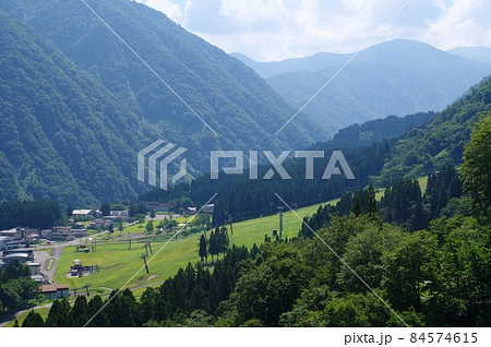 夏の白山一里野高原スキー場からの、中宮方面の眺め