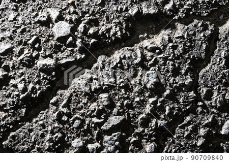 ひび割れた黒いアスファルトのテクスチャ 背景素材