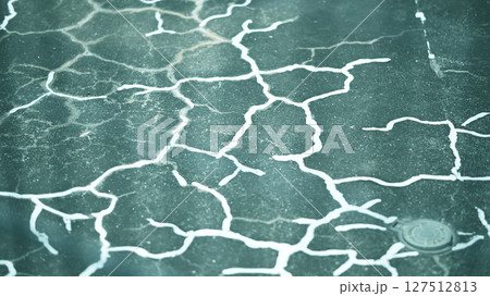 ひび割れた緑アスファルトのテクスチャ 背景素材