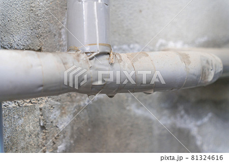 排水用の配管や水道管の接続部より漏水する不具合のイラスト