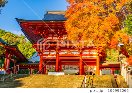 滋賀県大津市神宮町の近江神宮 楼門と紅葉