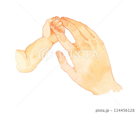 母親の指を握る赤ちゃんの手 人の手の手描き水彩イラスト素材