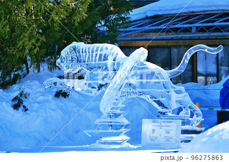 Ice statue of winged fantasy animal isolated on white background. Vector cartoon close-up