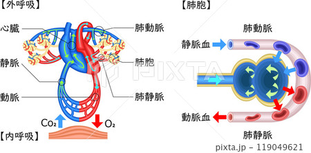 ガス交換 肺 呼吸 イラスト 日本語