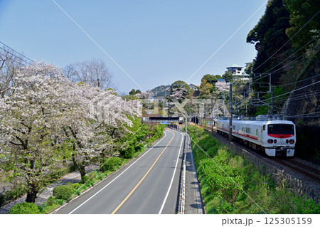 水戸偕楽園付近を行く常磐線特急ひたち号