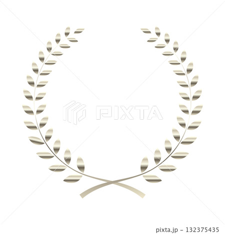 月桂樹フレームのイラスト 月桂冠シンプル シルバー銀色 メタリック ベクターpng