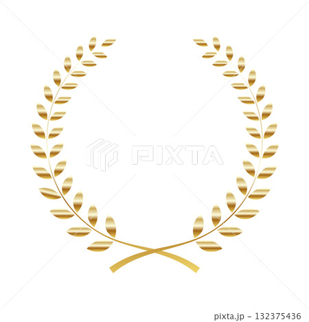 月桂樹フレームのイラスト 月桂冠シンプル 金色ゴールド メタリック ベクターpng