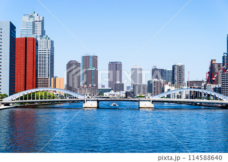 東京都、隅田川(勝鬨橋)の風景