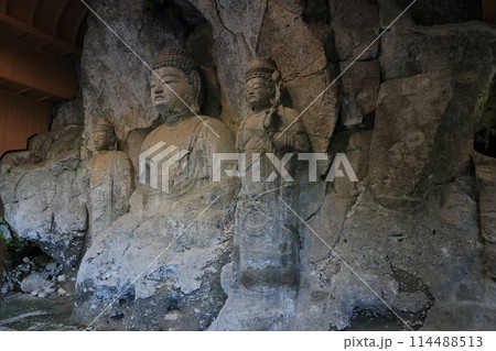 国宝臼杵石仏、ホキ石仏第二群、第一龕「阿弥陀三尊像」